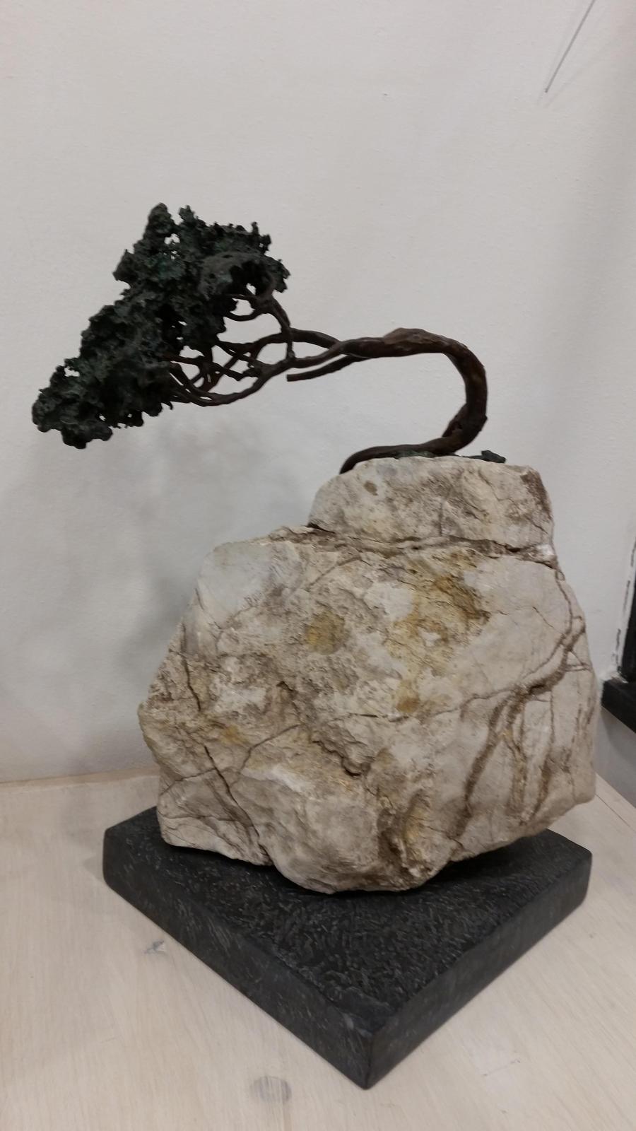 sculpture in bronze with patina and base made of stone