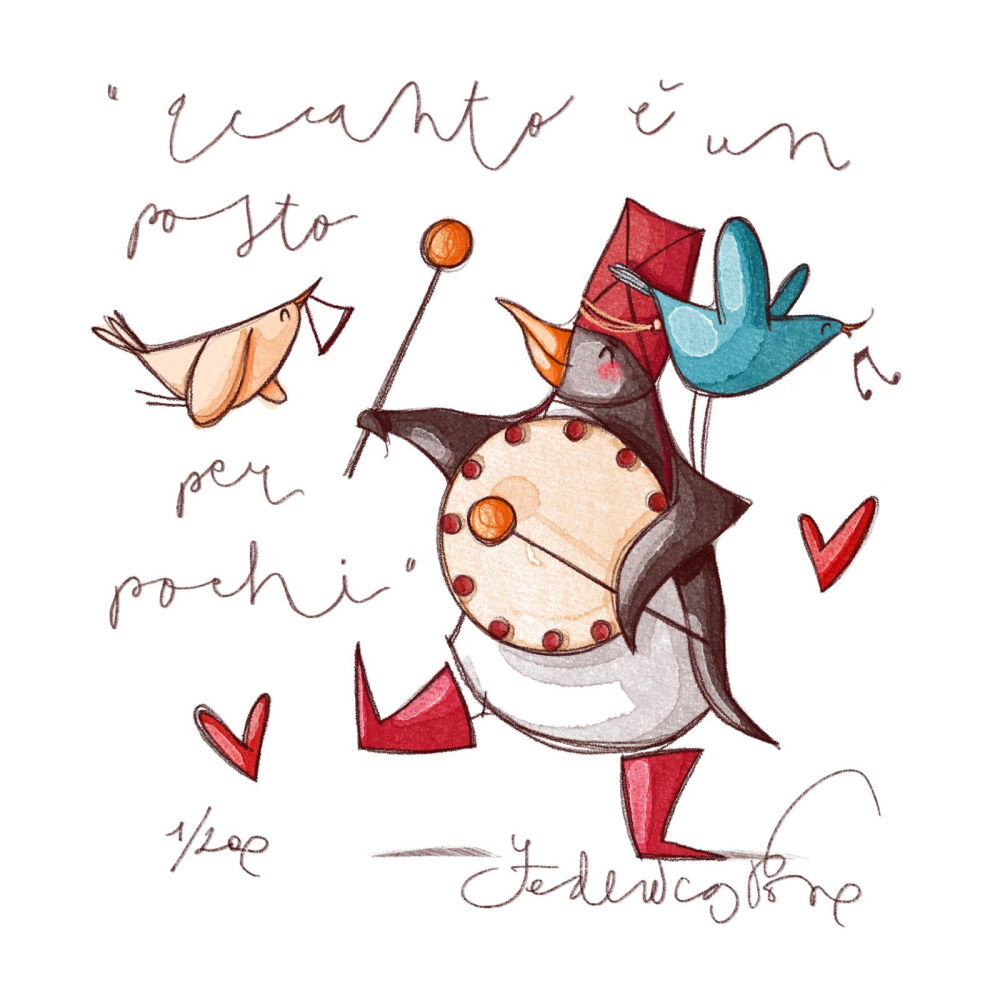 “Accanto è un posto per pochi” stampa in fine art, giclèe retouchè ad edizione limitata, numerata e firmata dall’artista Federica Porro. Dimensioni cm 14×14.