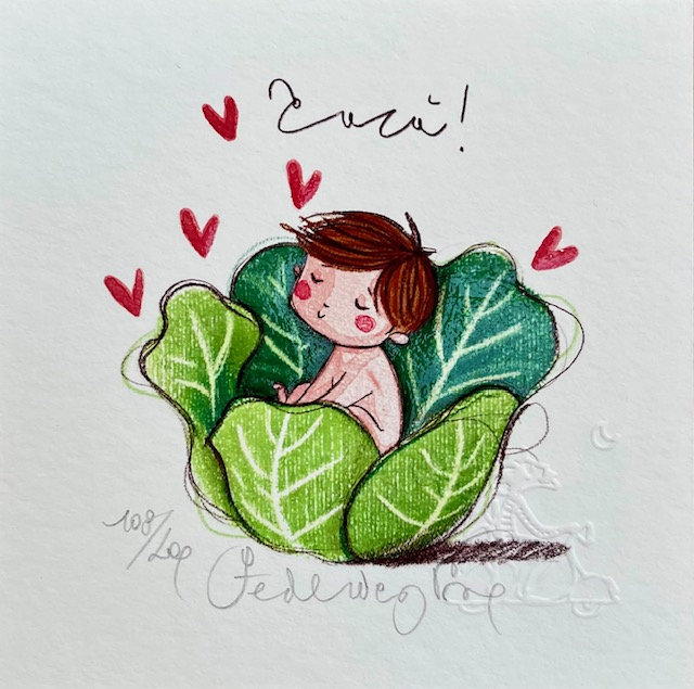 “Cù-cù (lui)” stampa in fine art, giclèe retouchè ad edizione limitata, numerata e firmata dall’artista Federica Porro. Dimensioni cm 14×14.