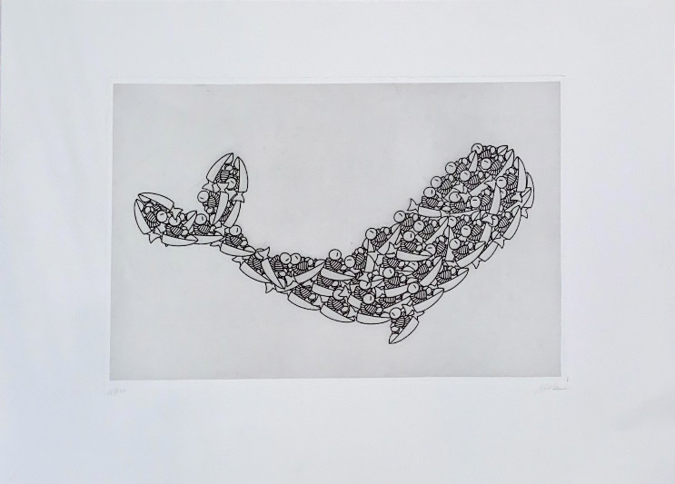 “Sailorwhale” acquaforte ad edizione limitata, dell’artista Melkio. Dimensioni cm 65×48.